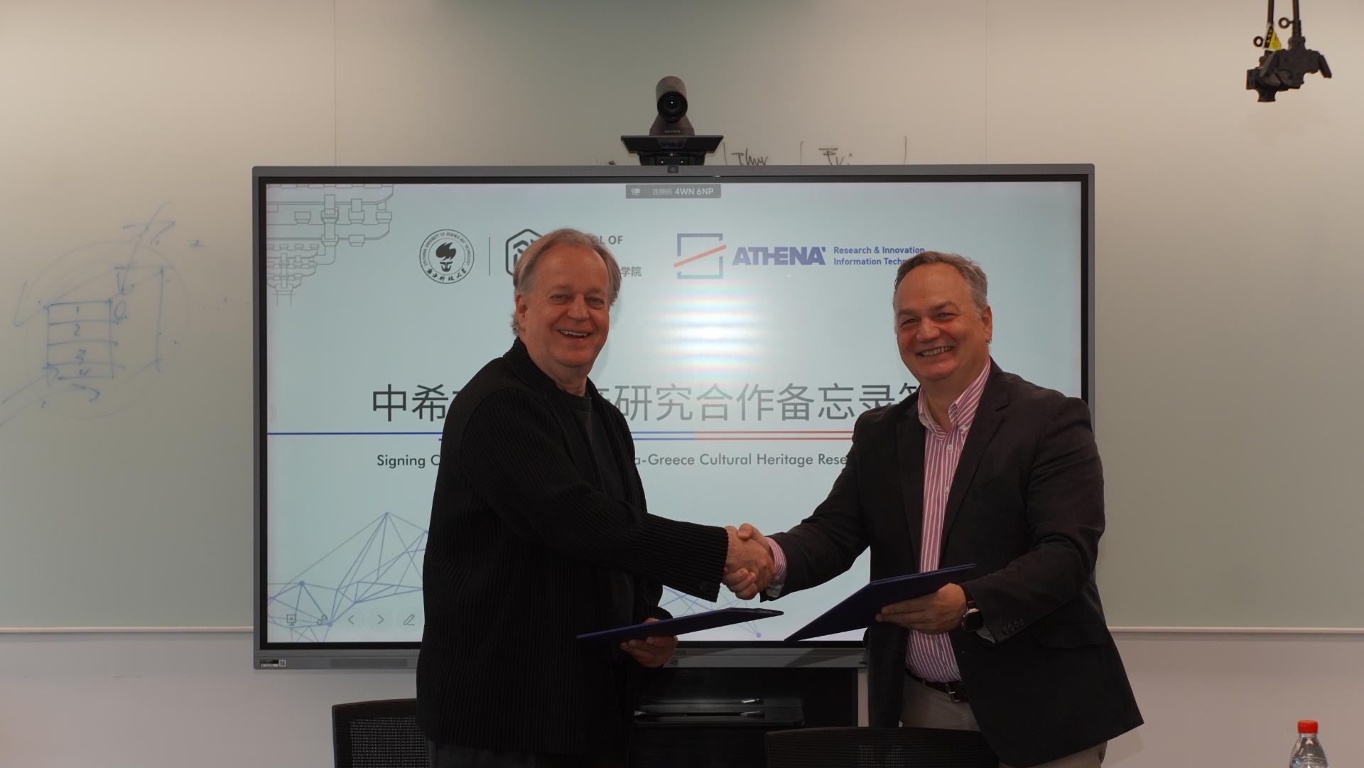 图1 设计学院院长Thomas Kvan和ISLP研究所所长Vasileios Katsouros签署合作备忘录