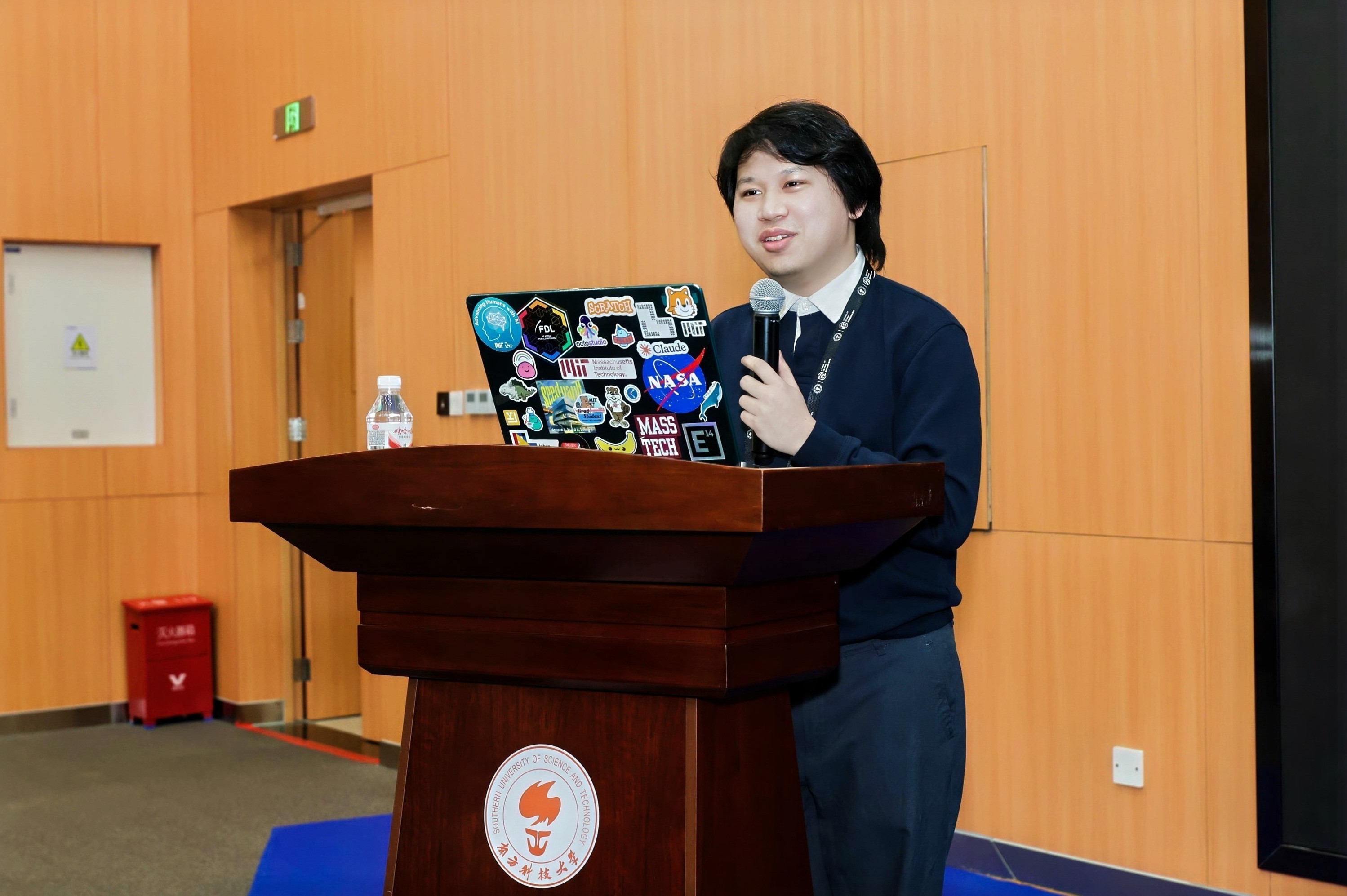 1月5日上午,与会学者与学生在南科大商学院完成注册。下午,活动在学校大成礼堂正式拉开帷幕,学院院长 Thomas Kvan 教授首先致开幕辞。在主旨演讲环节,东京大学 Jun Rekimoto 教授、芝加哥大学 Ken Nakagaki 助理教授,以及来自 MIT 的 Pat Pataranutaporn 助理教授分别分享了各自的前沿研究成果。其后举行的海报展示与原型交流环节中,与会者齐聚商学院一楼,围绕研究内容展开了深入而热烈的讨论与自由交流。除了国际注册参会者,活动还吸引了许多校内外师生、企业家和创业者参会。