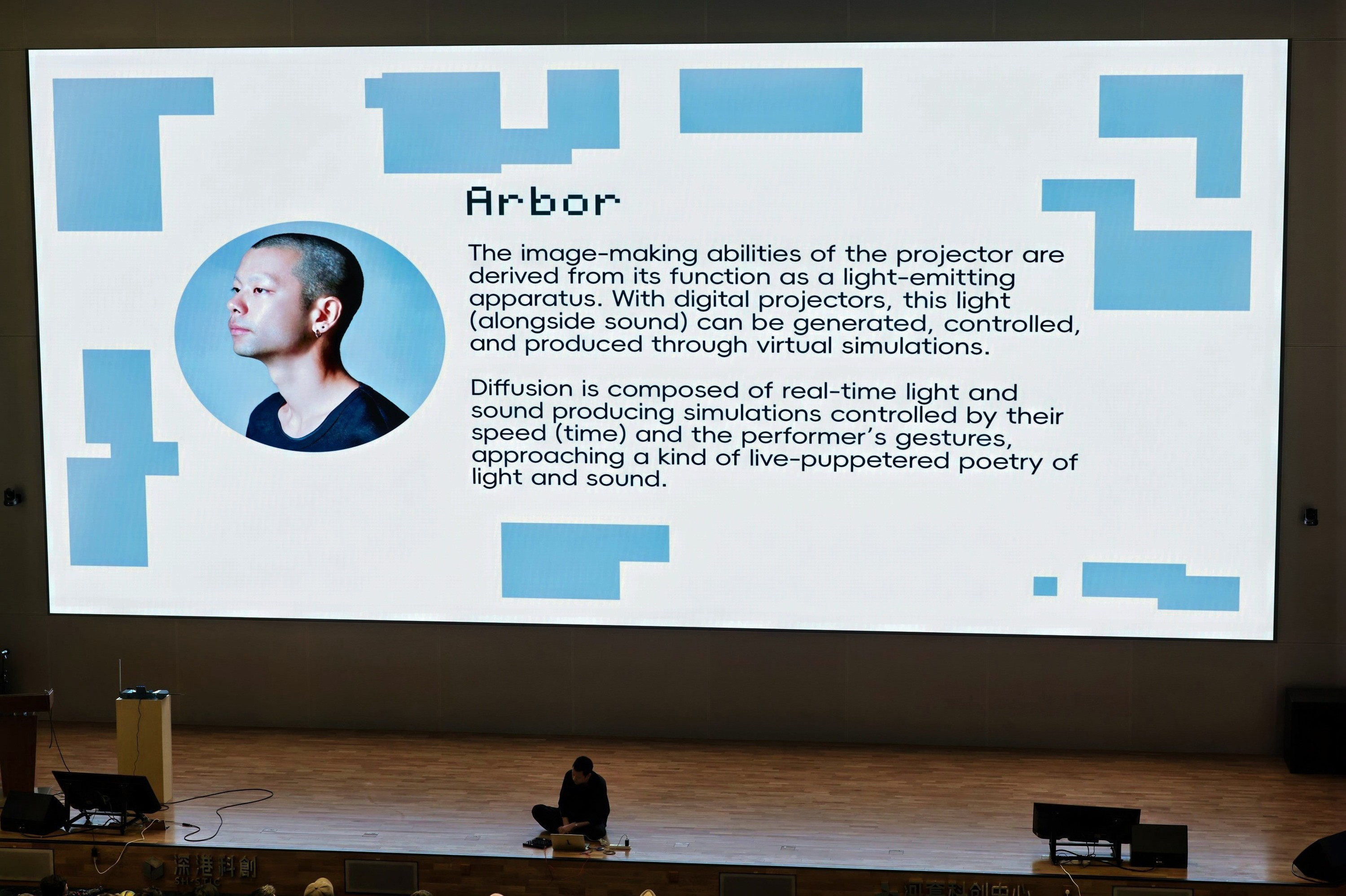 1月7日,交流活动走进深港城市\建筑双城双年展。来自康奈尔大学的 Sang-Won Leigh 助理教授作学术报告分享;此外,东北大学副教授李佳宝、法国未来技术研究院首席研究员萧潇、国际艺术科学研究机构总监三三德,以及 MIT 博士生 Char Stiles、滑铁卢大学 Derrek Chow 带来了融合艺术与科技的现场表演,展现了跨界研究的多元表达形式。