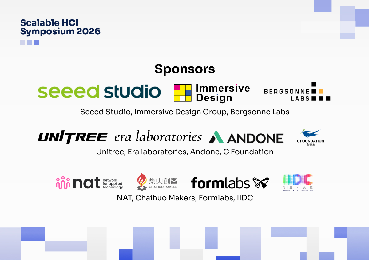 可拓展性人机交互2026国际学术交流活动得到了深圳矽递科技有限公司、南科大设计学院沉浸式设计小组、Bergsonne Labs、宇树科技、Era Laboratories、Andone、创基金、NAT、柴火创客及 Formlabs 的主要经费与设备支持,并获得中国工业设计协会信息与交互设计专业委员会的支持与指导。