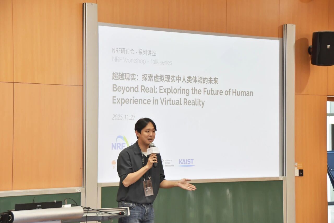 On November 27, 2025, the NRF Workshop– Talk Series, funded by the National Research Foundation of Korea (NRF) and hosted by the School of Design, Southern University of Science and Technology (SUSTech), was held in Lecture Hall 103 of the College of Business. The event brought together researchers from the University of Tokyo, KAIST, Electronics and Telecommunications Research Institute (ETRI), Jinan University, and SUSTech to discuss cutting-edge topics in virtual reality, human–computer interaction, embodiment, and wearable technologies.