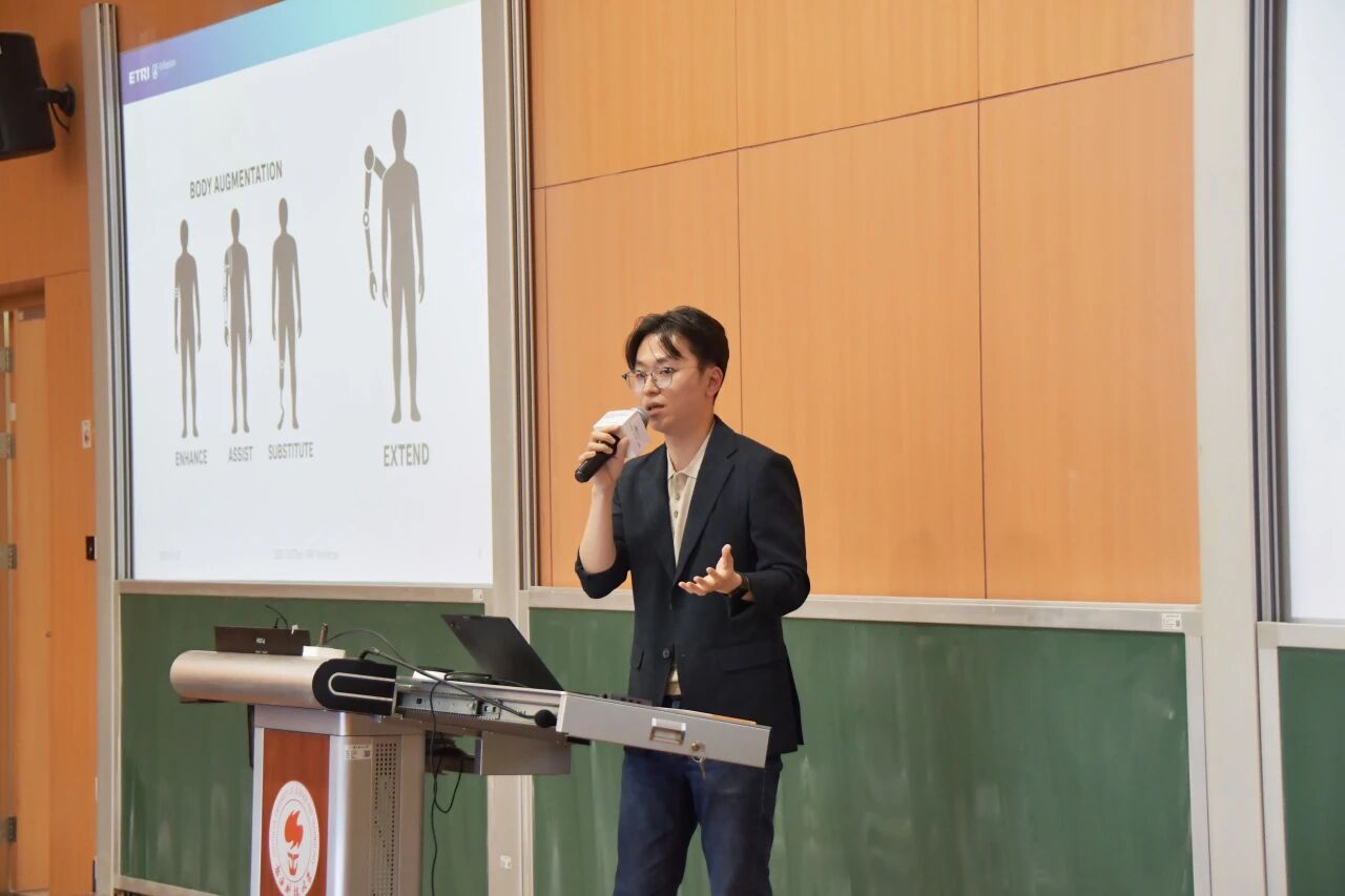 Researcher HyeonBeom Yi presented the technical pathway from VR embodiment research to the design of real-world wearable robotic systems. Using supernumerary robotic limbs as an example, he explored how body augmentation can extend human motor capabilities. He highlighted the importance of sensory mapping and motor control in system design and explained how insights from VR embodiment studies can be transferred to the development of wearable robotic systems.